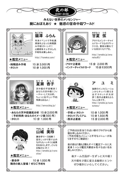 ご予約はお目当ての占い師のブログから直接お願いいたします
